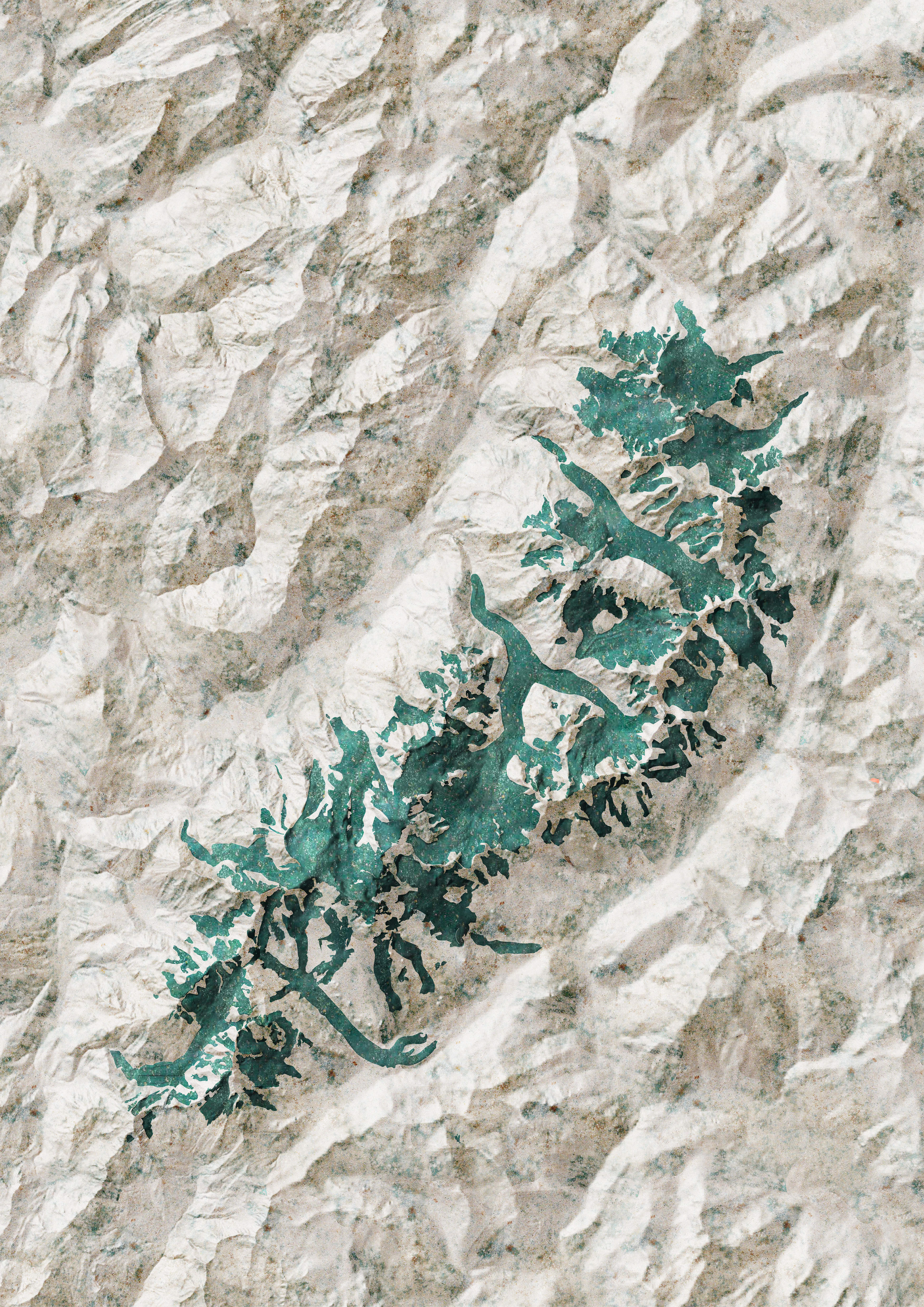 A map of the Massif du Mont Blanc highlighting its remaining glaciers.