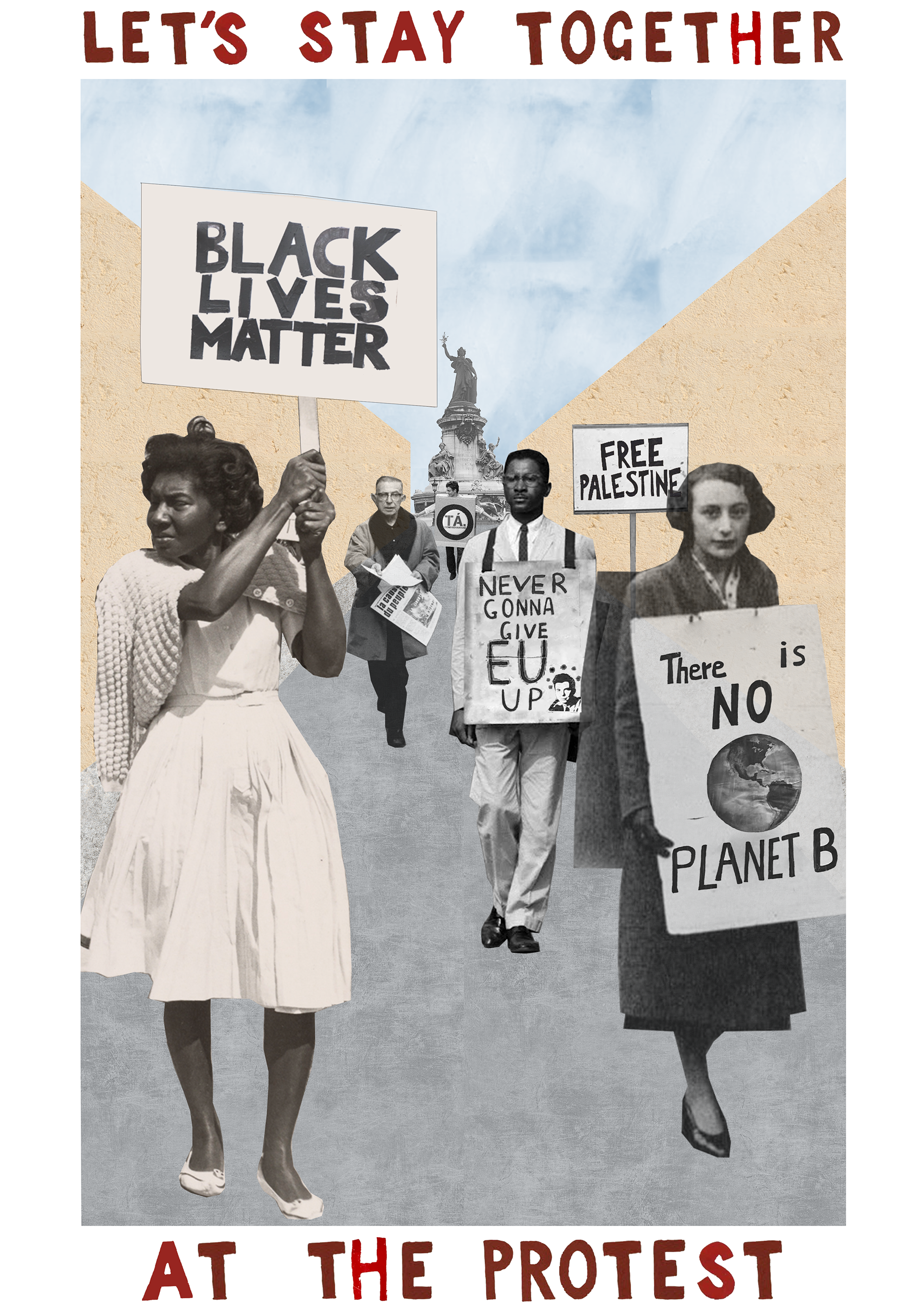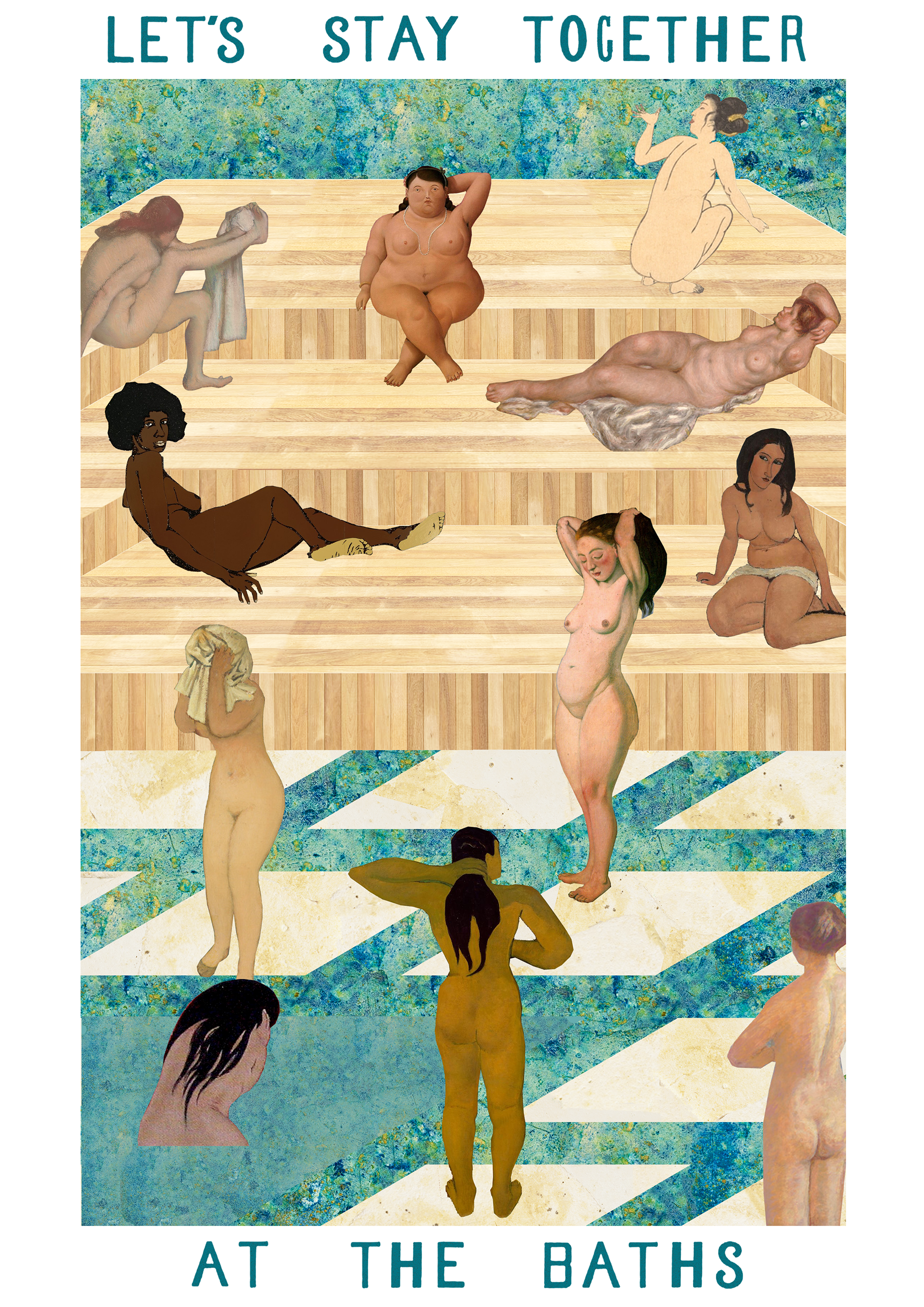 Let's Stay Together is an ongoing series of posters celebrating the spaces in which humans gather. For each poster, the images, texture, and typography are chosen to reflect the theme and reference the space being represented.
